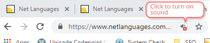 4. In Chrome make sure sound is not deactivated for the site. Click on the speaker icon next to address bar to turn on sound if the image below appears.