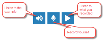 1. With these buttons you can listen to an example, repeat and record yourself, and listen to what you recorded.
